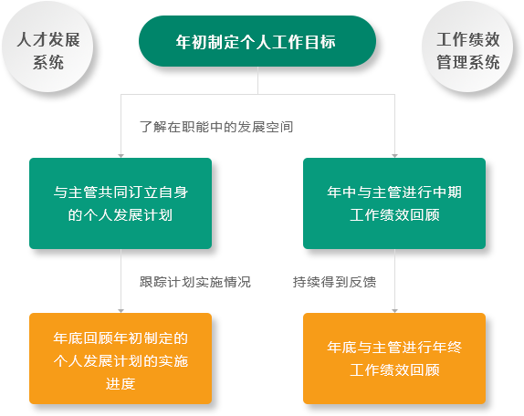 为了有效地培养和发展人才,多彩网拥有一套完善的工作绩效管理系统,来帮助员工客观准确地评估自己的职能水平,了解在职能中的发展空间,进而在公司的支持下学习和发展。 工作绩效管理系统的特点是它与人才发展系统紧密结合,缺一不可。